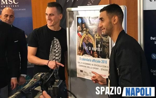 Simpatico siparietto al temine della conferenza stampa per la presentazione del Calendario 2018 della SSC Napoli. I due protagonisti sono stati Faouzi Ghoulam e Arek Milik.