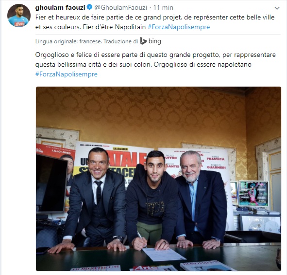 Faouzi Ghoulam ha commentato su Twitter il rinnovo di contratto con il Napoli: