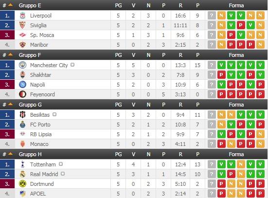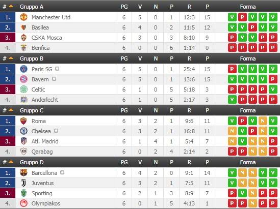Qualificate come prime: Manchester United, PSG, Roma, Barcellona, Manchester City, Besiktas, Tottenham, Liverpool/Siviglia/Spartak Mosca.