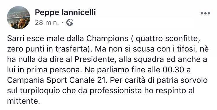 Più tardi Iannicelli ha commentato il tutto sul suo profilo Facebook, preferendo la via del silenzio.