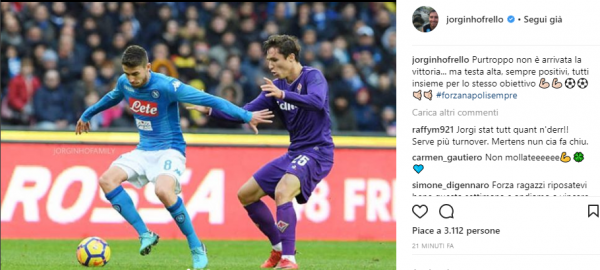 Jorginho ha scritto un post su Instagram dopo il pareggio con la Fiorentina: