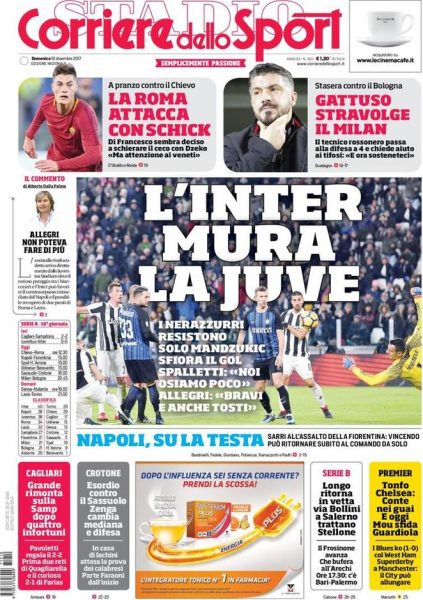 Non solo però Juve-Inter. A rubare l’interesse anche la rivoluzione di Gennaro Gattuso, pronto a stravolgere il suo Milan. La Roma, di scena a Verona, sponda Chievo, pronta a giocarsi la carta Schick. Un occhio al Torino, con la posizione di Mihajlovic traballante: per lui, contro la Lazio, una partita da ultima chiamata. Infine uno sguardo al Napoli: alzare la testa, vincere contro la Fiorentina, riprendersi il primo posto.