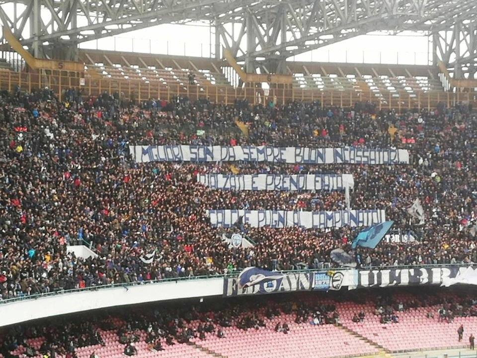 Prima del match Napoli-Fiorentina, che si sta disputando proprio in questi istanti, è spuntato una striscione. Questo quanto riportato: