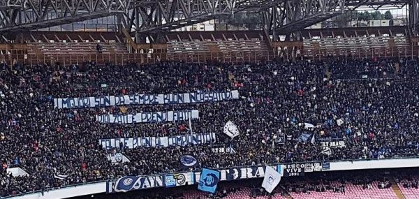 Prima del match Napoli-Fiorentina, che si sta disputando proprio in questi istanti, è spuntato una striscione. Questo quanto riportato: