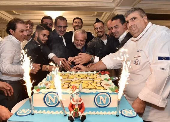Si sta andando a concludere una serata di grande festa, caratterizzata da tante foto e sorrisi ben visibili. E per ogni festa che si rispetti, c’è sempre una torta alla fine. L’ultimo tweet del Napoli, infatti, riporta una foto dove festeggiano il presidente De Laurentiis, Maurizio Sarri, Lorenzo Insigne e Marek Hamsik davanti ad una grandissima torta azzurra. Su di essa tanti stemmi del Napoli, con un ciuccio “vestito” da Babbo Natale in bella vista ed una grossa scritta di auguri di buone feste. E che queste feste possano far ripartire gli azzurri con la marcia giusta, per arrivare al tanto desiderato tricolore.
