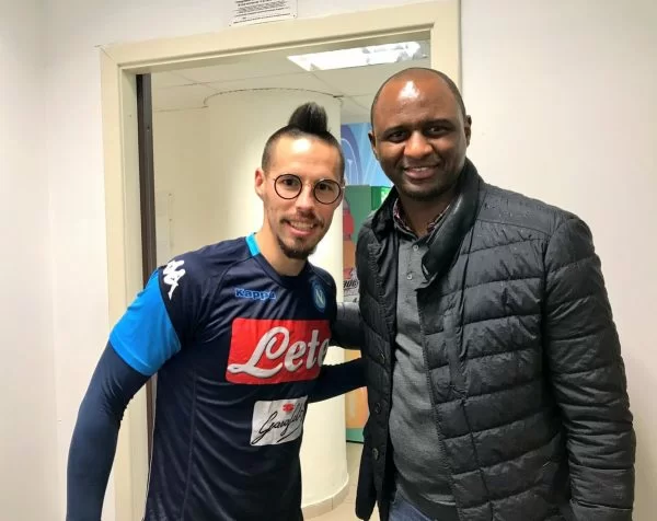 Una sorpresa per il Napoli oggi al centro sportivo di Castel Volturno: Patrick Vieira ha assistito all’allenamento degli azzurri .