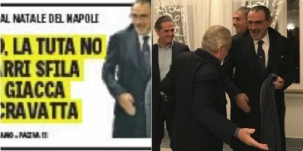 Uno dei temi che hanno scatenato più curiosità sulla cena di Natale fatta ieri dal Napoli è stato il fatto che si sia visto un elegantissimo Maurizio Sarri, che per una sera ha accantonato la tuta per sfoggiare l’abito.