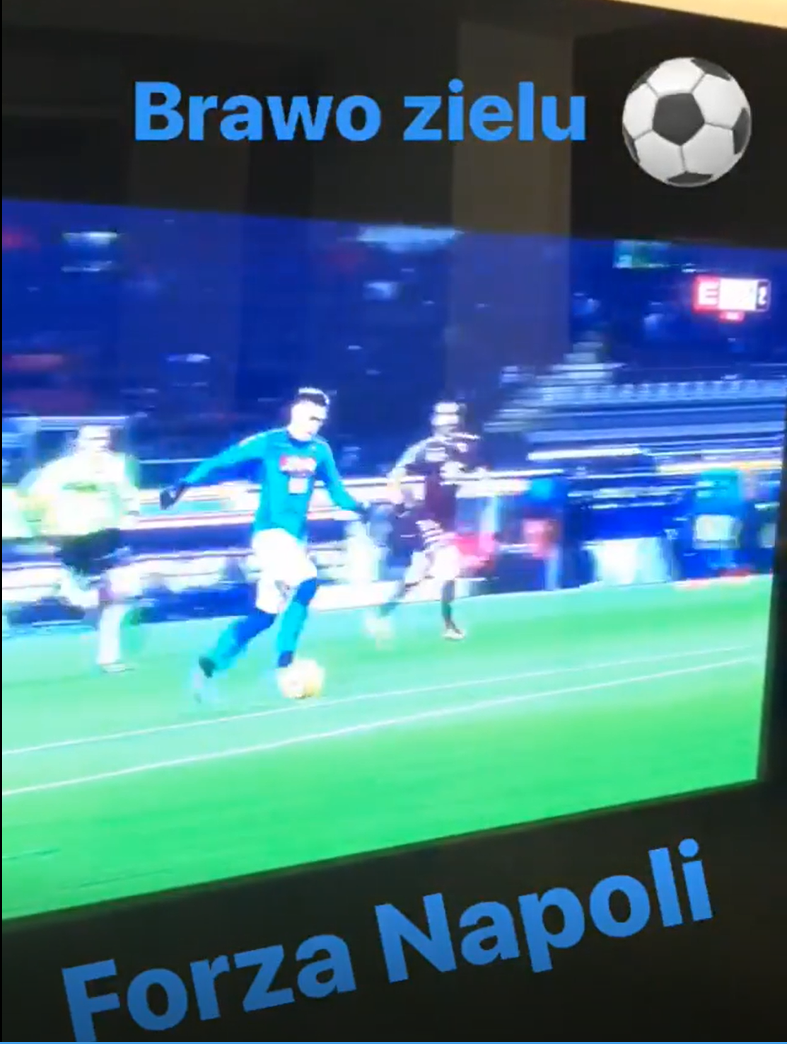 Non ha potuto partecipare alla festa del Napoli Arek Milik, ma ha fatto sentire il suo sostegno da casa. Ha affidato a una storia su Instagram i suoi complimenti a un compagno in particolare, Piotr Zielinski, dopo il suo gol.
