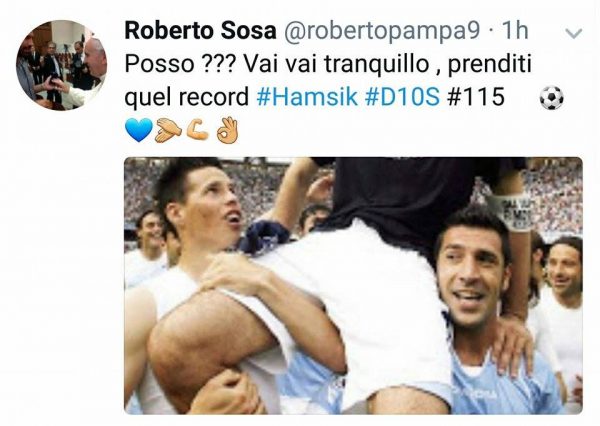 Roberto Sosa si è espresso su Twitter in merito al record di Marek Hamsik. Infatti, proprio stasera, nella partita tra Torino e Napoli (1-3) il capitano ha realizzato il suo 115 esimo gol con la maglia azzurra, raggiungendo cosí Maradona in testa alla classifica marcatori di tutti i tempi dei partenopei.