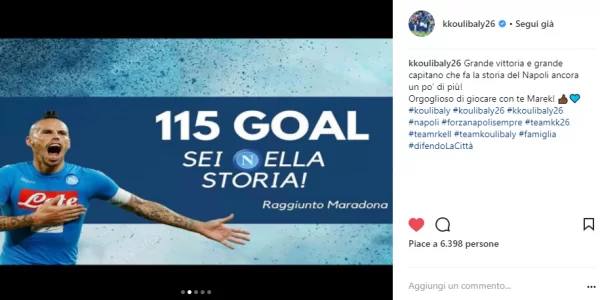 Pochi minuti fa, è arrivato anche il messaggio di Koulibaly, che sul suo profilo Instagram ha scritto: “Grande vittoria e grande capitano che fa la storia del Napoli ancora un po’ di più! Orgoglioso di giocare con te Marek!“.