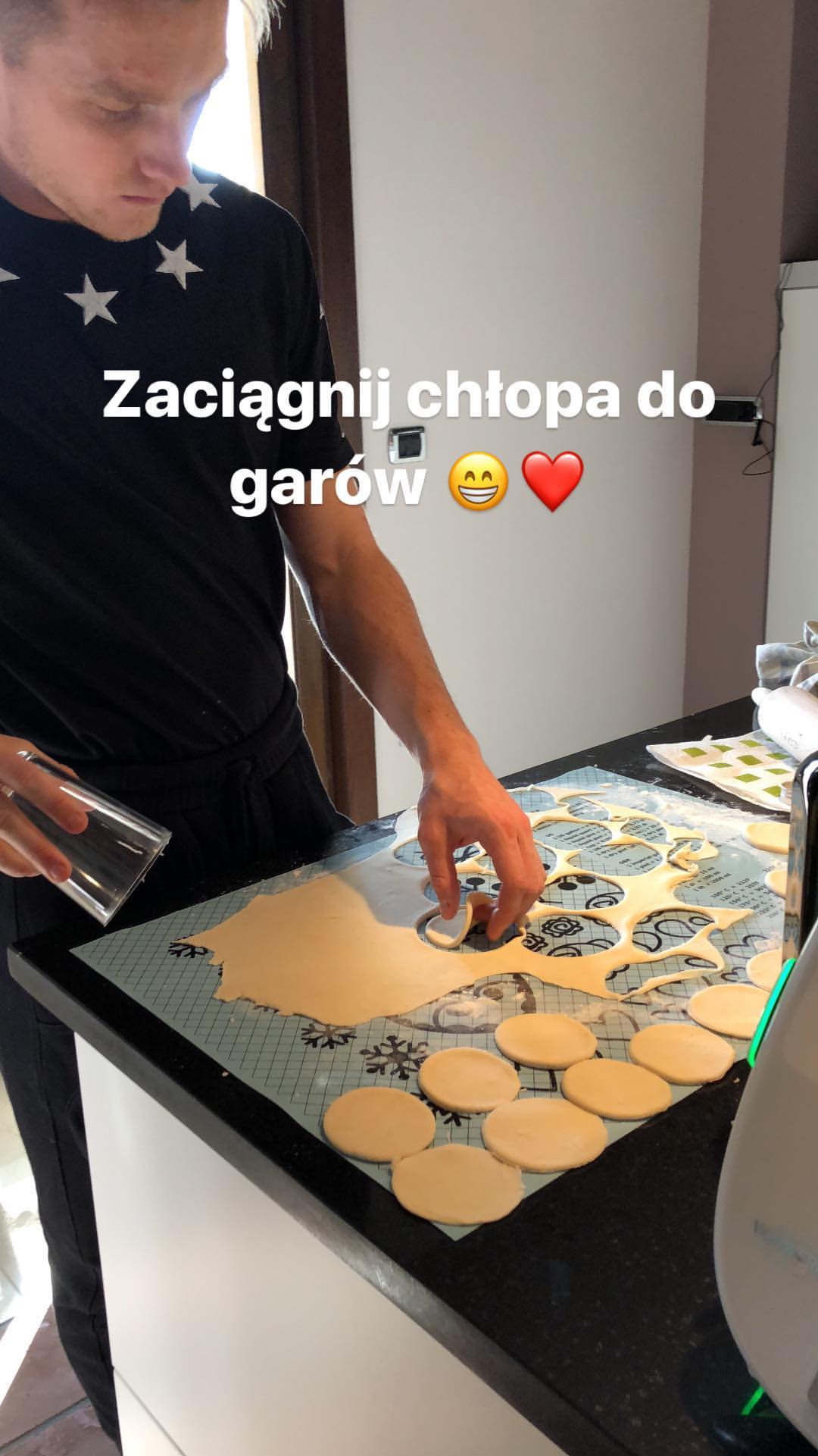 Concentrato anche in cucina, proprio come sul terreno di gioco: così è apparso Zielinski col mattarello tra le mani.