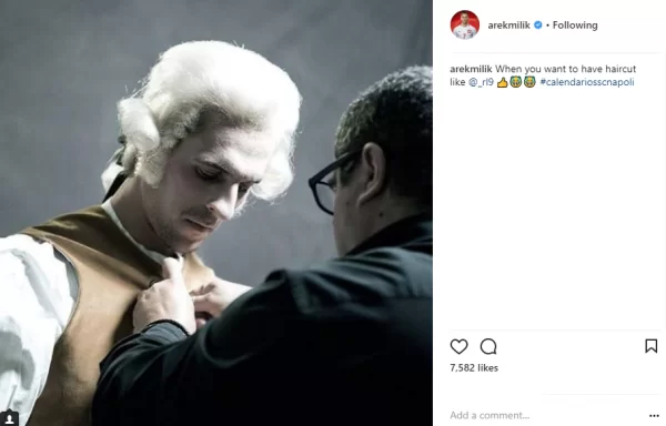 L’attaccante azzurro ha postato una foto di sé durante la realizzazione del calendario della SSC Napoli, con su una parrucca, e ha scritto: “Quando vorresti i capelli come Lewandowski”, richiamando al look del compagno.