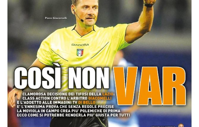 Apertura particolare del Quotidiano Sportivo: “Così non Var. Clamorosa decisione dei tifosi della Lazio: class action contro l’arbitro Giacomelli”. Immancabile, infine, il riferimento alla Coppa Italia: “Torna Dybala. Gol e assist per Higuain. Juve avanti”.