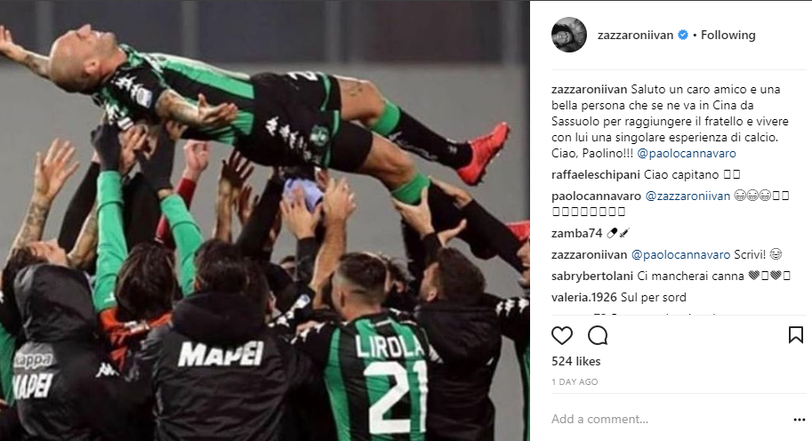 Anche Ivan Zazzaroni si unisce al saluto per Paolo Cannavaro, difensore del Sassuolo che ha salutato il proprio pubblico ed i propri compagni per l’ultima volta nell’ultimo turno, in procinto di trasferirsi in Cina dal fratello Fabio.