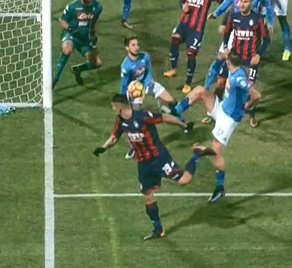 “Per me è rigore. I parametri sono la distanza, in questo caso è calcio d’angolo quindi Mertens poteva controllare i propri movimenti, e la volontarietà: in questo caso è il braccio ad andare verso il pallone. Per Mariani era difficile, ma dal VAR avrebbero dovuto riferirlo all’arbitro e far fischiare calcio di rigore”.
