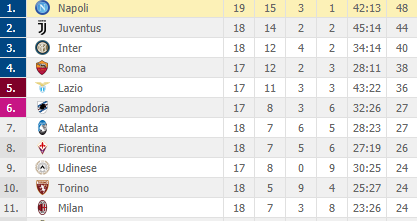 Tre punti importantissimi per gli azzurri di Maurizio Sarri, che per il secondo anno di fila si consacrano campioni d’inverno della Serie A.