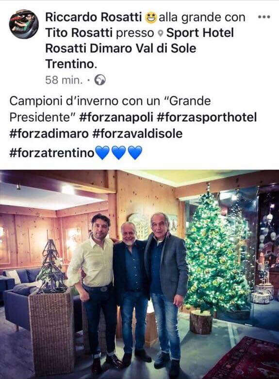 Il patron azzurro era a Dimaro dove si è gustato il match in ottima compagnia, in una location più che familiare, dall’Hotel Rosatti, albergo che ospita gli azzurri che nel paese del Trentino svolgono il ritiro estivo.