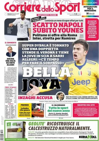 Ma mentre Tuttosport nemmeno accenna al Napoli, il Corriere dello Sport si sofferma su un obiettivo del mercato azzurro: Younes. In “un mese di super affari”, pare che il Napoli si sia accaparrato subito il giocatore con uno scatto fulmineo. Vedremo gli sviluppi.