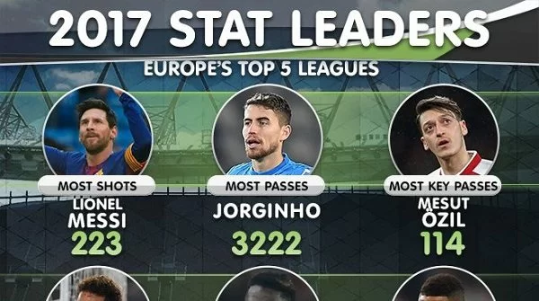 In questa speciale classifica ci sono calciatori del calibro di Messi (maggior numero di tiri), Ozil (maggior numero di passaggi chiave) e Neymar (maggior numero di dribbling). Presente, forse un po’ a sorpresa, anche il portiere del Crotone, Alex Cordaz (maggior numero di parate).