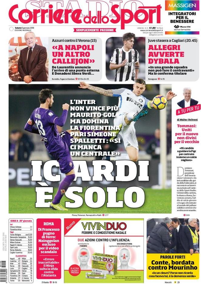 Nella prima pagina dell’edizione nazionale del quotidiano, tra poche ore in edicola, una anticipazione, a tema mercato: “Arriverà un altro Callejon”.