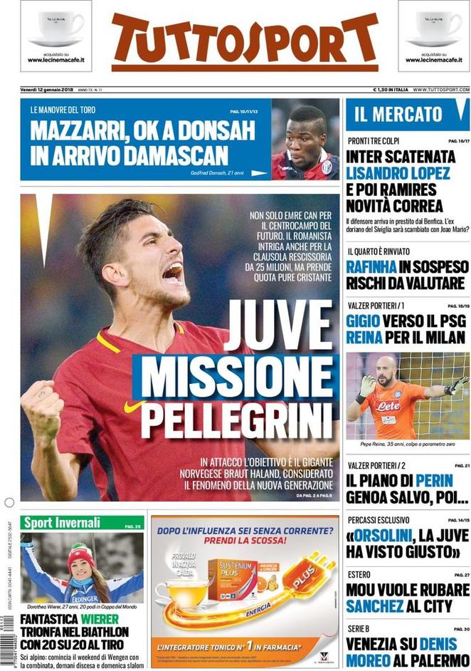 Tuttosport invece si focalizza sul prossimo valzer dei portieri, per il prossimo giugno: Gigio Donnarumma verso il PSG, il che liberebbe Pepe Reina, libero contrattualmente dal Napoli dal prossimo giugno, ma idoneo già a firmare per altri club dal prossimo febbraio.
