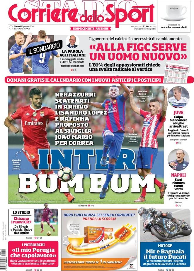 Tuttosport invece si focalizza sul prossimo valzer dei portieri, per il prossimo giugno: Gigio Donnarumma verso il PSG, il che liberebbe Pepe Reina, libero contrattualmente dal Napoli dal prossimo giugno, ma idoneo già a firmare per altri club dal prossimo febbraio.