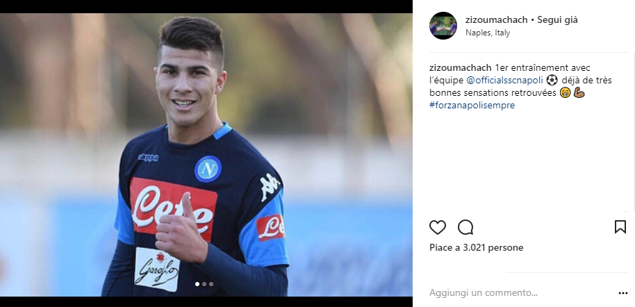 Subito si è fatto sentire Machach, il neo-acquisto azzurro che oggi ha esordito in allenamento con la squadra a Castel Volturno. Si è fatto sentire sul suo profilo Instagram dove, poco fa, ha postato uno scatto che lo ritrae sorridente con la casacca del Napoli e una descrizione che fa ben sperare.
