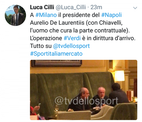 ADL è stato pizzicato insieme a Chiavelli, a.d. e uomo di fiducia del patron, da Luca Cilli, collega di Sportitalia, che ha postato lo scatto sui social: