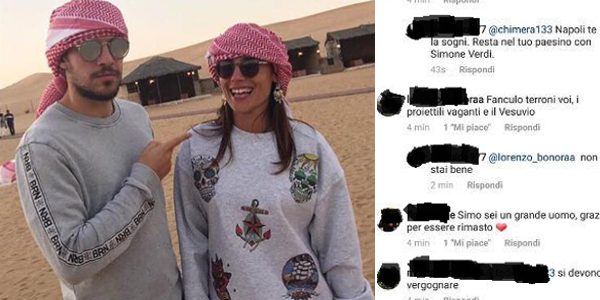 Nei commenti dell’ultima foto postata dall’attaccante su Instagram (quella che lo ritrae con la fidanzata nel deserto, ndr), infatti, si sta scatenando una vera e propria guerra verbale tra tifosi del Bologna e quelli del Napoli. Le offese si sprecano con i supporters partenopei che lo accusano di “Non avere palle“, al quale arrivano risposte del tipo: “Hai fatto bene a non andare in quel monnezaio“. E i diverbi, purtroppo, non si fermano qui.