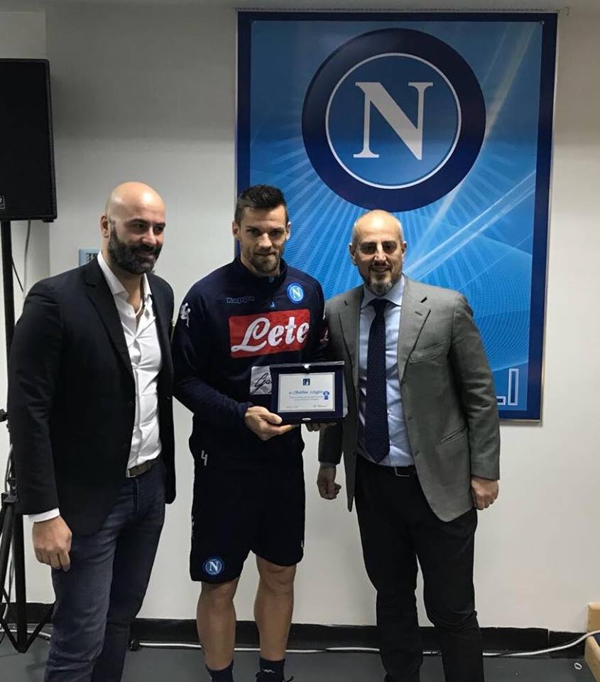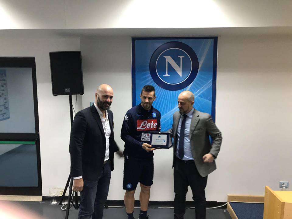 Il premio del mister è stato ritirato da un rappresentante della società calcio Napoli che provvederà a consegnare nelle mani di Maurizio. Il premio “speciale” per Christian Maggio lo abbiamo consegnato al vice capitano che si è dimostrato affettuoso e molto cordiale.