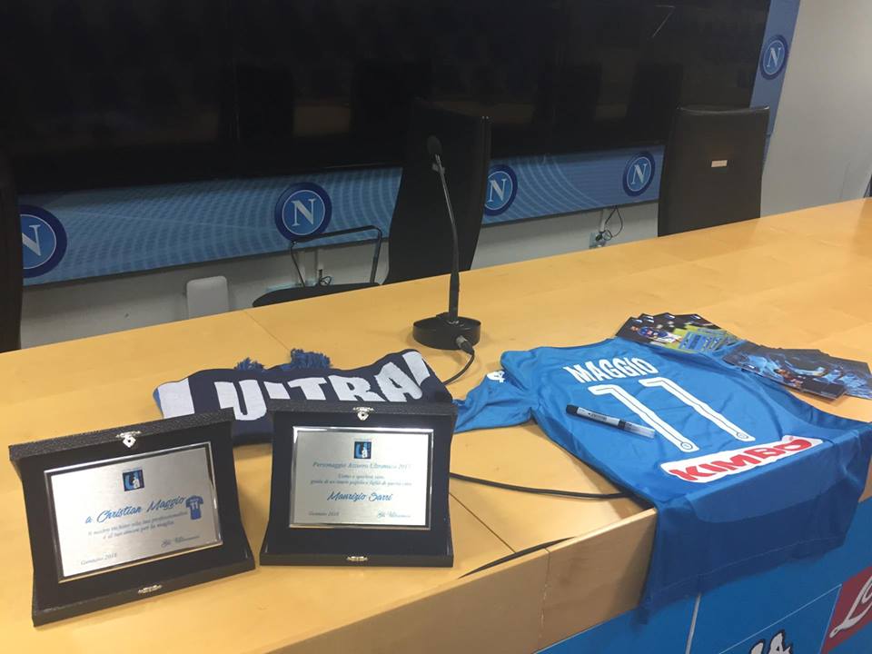 “Oggi pomeriggio abbiamo Consegnato i premi Ultramici a mister Sarri e Christian Maggio.
