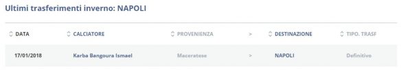 Ancora un acquisto in casa Napoli. Dal sito ufficiale della Lega Serie A, infatti, si apprende che i partenopei hanno acquistato Karba Ismael Bangoura dalla Maceratese.