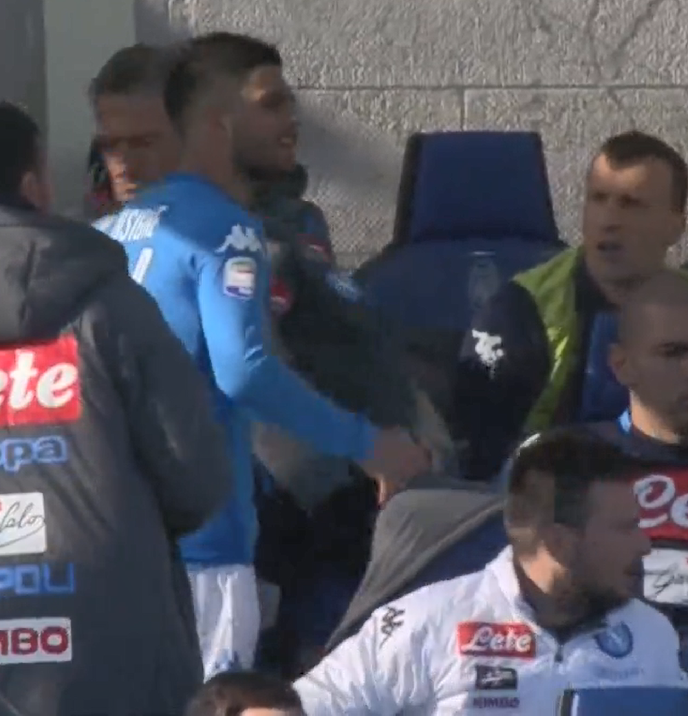 Insigne non è apparso però entusiasta del cambio pensato da mister Sarri, il talento partenopeo borbottava al momento del cambio, dura la risposta del tecnico azzurro: “Stai zitto, vatti a sedere non voglio sentire storie.” Lo riporta Sky Sport.