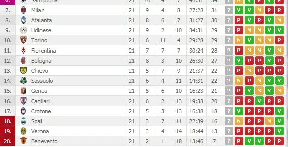ECCO LA CLASSIFICA AGGIORNATA: