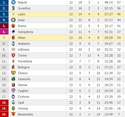 La Classifica aggiornata