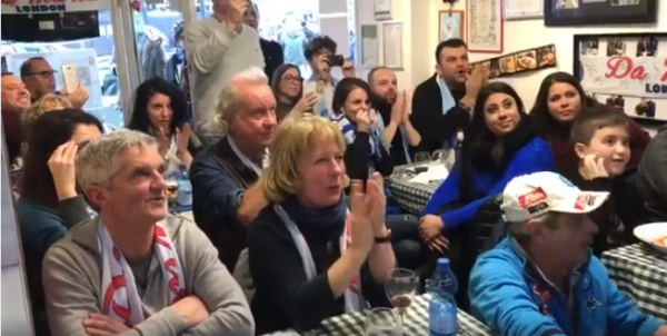 Esultanza di un certo valore, quella avvenuta nel noto ristorante londinese “Da Maria London”, al gol di Dries Mertens durante il primo tempo di Napoli-Bologna. Al gol del belga, freddo dal dischetto a battere Mirante, i suoi genitori erano presenti nel locale, che li ha ripresi insieme ad altri tifosi in un esultanza tutta di famiglia, per il gol di loro figlio.