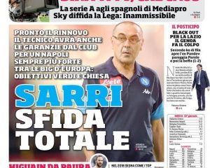 “Sarri, sfida totale! Pronto il rinnovo. Il tecnico avrà anche le garanzie dal club per un Napoli sempre più forte tra le big d’Europa: obiettivi Verdi e Chiesa”.