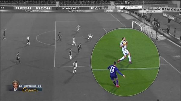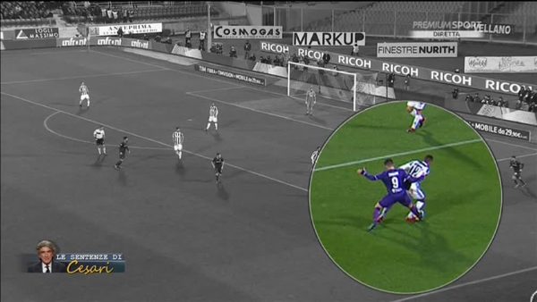 Questa la spiegazione di Cesari: “Andava fischiato il fallo di #Simeone su Alex Sandro, ma poi è il bianconero a toccare il pallone, quindi non può essere fischiato un fuorigioco. O fallo per la Juve o rigore Viola. Ma Guida non va mai a rivedere l’azione al monitor“.
