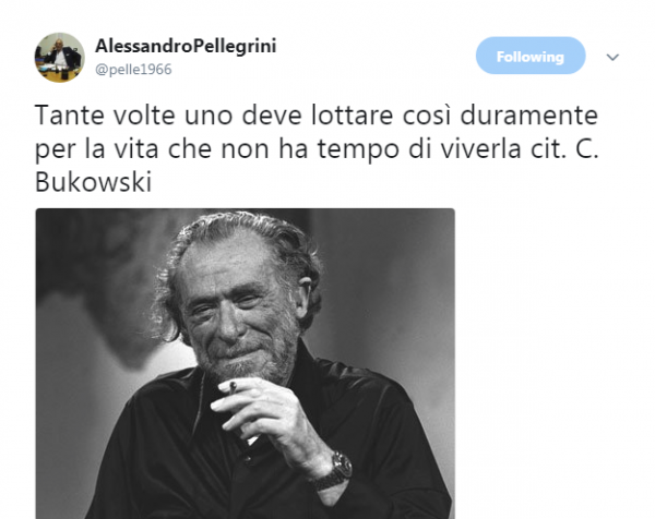 “Tante volte uno deve lottare così duramente per la vita che non ha tempo di viverla cit. C. Bukowski“, questo il commento di Pellegrini.