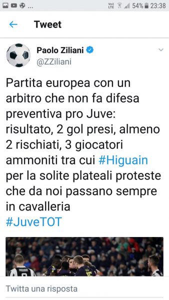 Il giornalista del Fatto Quotidiano Paolo Ziliani non le ha mandate certo a dire, per usare un eufemismo, alla Juventus e al suo allenatore, dopo il 2-2 casalingo con il Tottenham. Scatenato, ecco i suoi tweet polemici e pungenti.