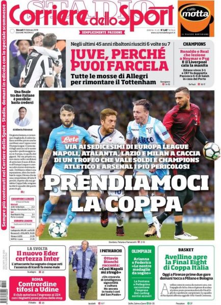 Le prime pagine sportive che troveremo tra poche ore in edicola si concentrano molto sugli impegni europei delle formazioni italiane.