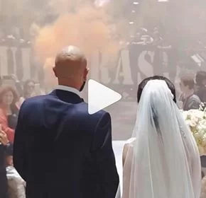 Due sposi non hanno lasciato da parte la loro fede per il Napoli nemmeno durante il giorno più importante della loro vita, quello del matrimonio. Lui è infatti un ultrà dei partenopei e così, all’uscita dalla chiesa dopo la cerimonia, un gruppo di tifosi ha accolto con fumogeni e il consueto grido “Non ci lasceremo mai” la coppia, mostrando lo striscione con la scritta “Ultras”, identificativo della Curva B.