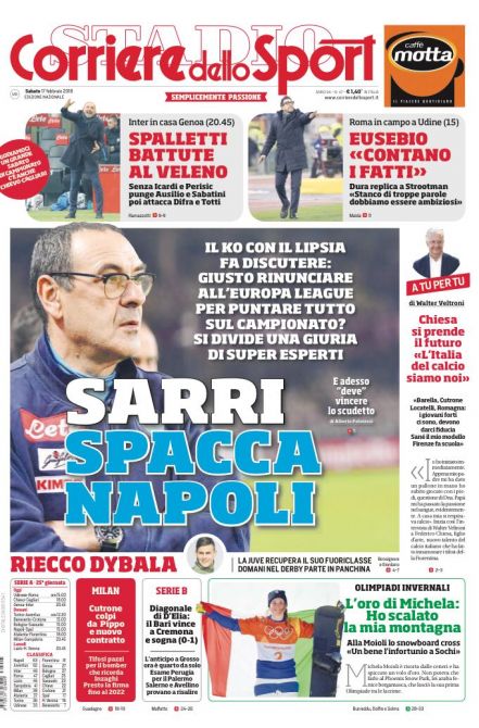 Ampio spazio dedicato alla divisione dei tifosi azzurri, tra chi assolve e chi condanna il tecnico e il gruppo per la caduta in Europa League. “Sarri spacca Napoli, il ko con il Lipsia fa discutere: giusto rinunciare all’Europa League per puntare tutto sul campionato? Si divide una giuria di super esperti”.