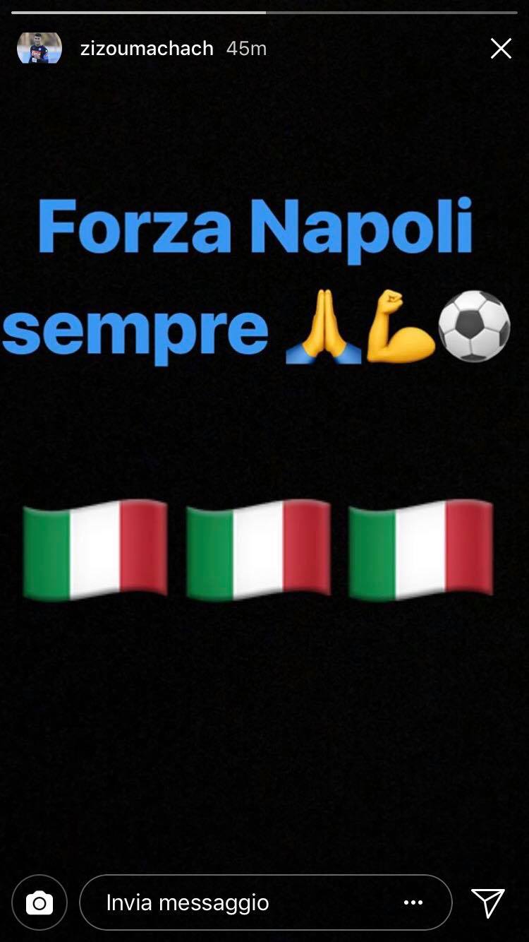 Anche Zinedine Machach al fianco dei compagni azzurri impegnati a Lipsia. Nel corso di Lipsia-Napoli, il nuovo acquisto azzurro con una story di Instagram ha così celebrato la sua nuova fede calcistica.