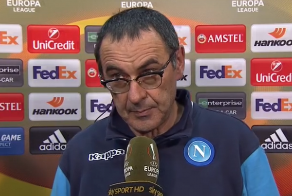 Maurizio Sarri è apparso ai microfoni di Sky Sport, ed inevitabilmente era scuro in volto. Gran vittoria, su un campo molto ostico, ma che non è bastata per superare il turno. Tanti i rimpianti riguardo la gara d’andata, in particolar modo il terzo gol concesso al San Paolo, decisamente evitabile.