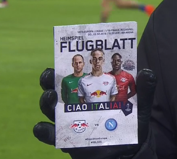 Comunque vada la partita, i tifosi del Lipsia hanno già vinto il premio per la sportività. Incredibile l’accoglienza che la società tedesca ha riservato al Napoli e ai suoi tifosi secondo quanto riferito da Massimo Ugolini, collega di Sky. La squadra è arrivata sulle note di “Sarà perché ti amo” dei Ricchi e Poveri, ma l’omaggio più bello è nell’opuscolo di presentazione della partita.