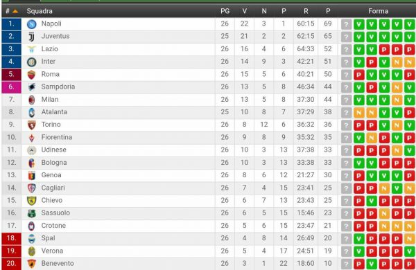 ECCO LA CLASSIFICA: