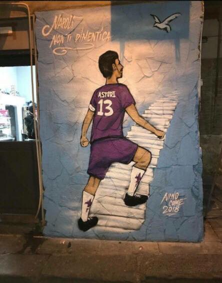 In città è apparso un murales in memoria di Astori, dove si legge chiaramente “Napoli non dimentica”.