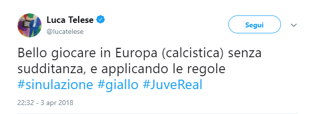 La Joya chiedeva un rigore e, più in generale, i suoi compagni protestavano per qualche fallo a loro favore non fischiato. Il tutto non è sfuggito al giornalista Paolo Telese che, su Twitter, ha prontamente commentato: “Bello giocare in Europa (calcistica) senza sudditanza e applicando le regole”…