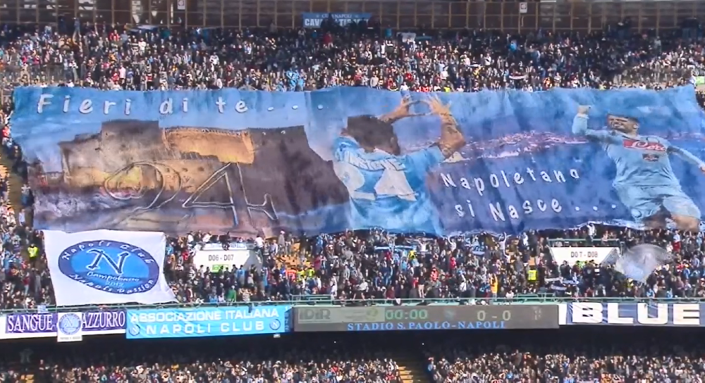 Dalla Curva A insistono i cori nei confronti di Aurelio De Laurentiis, ritenuto colpevole presumibilmente in fase di mercato.